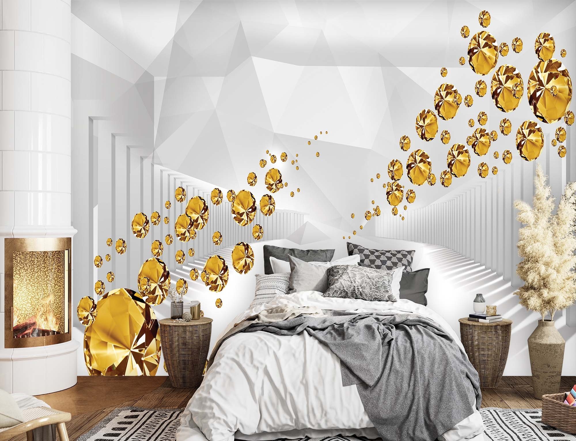 Fototapete Goldene Steine in einem abstrakten Tunnel