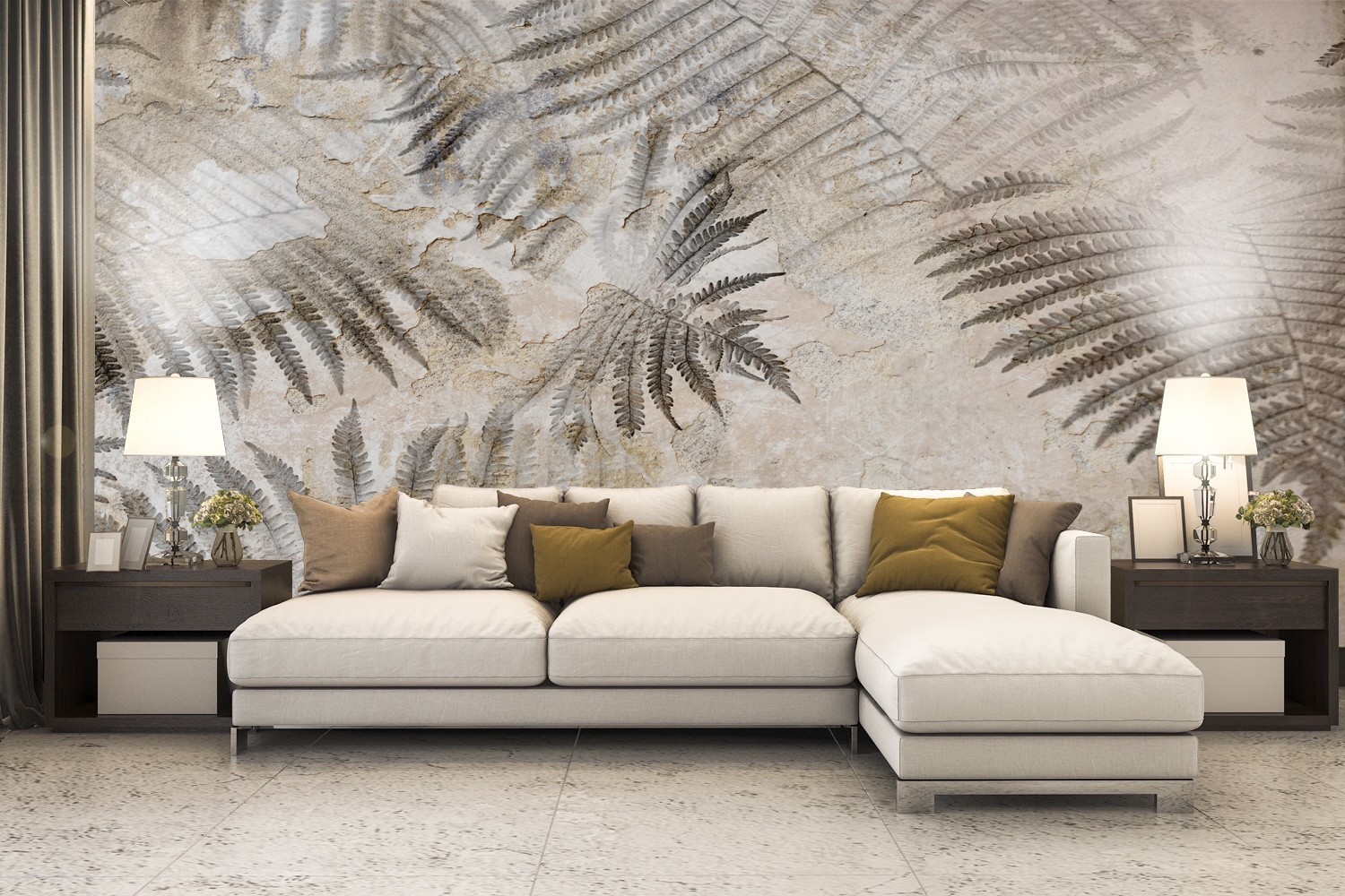 Fototapete Farn Blatt Palmen Beton 3D