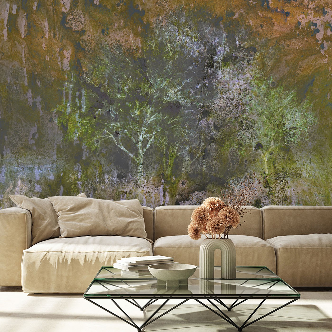 Fototapete Ein blühender Baum in der wiese Aquarell