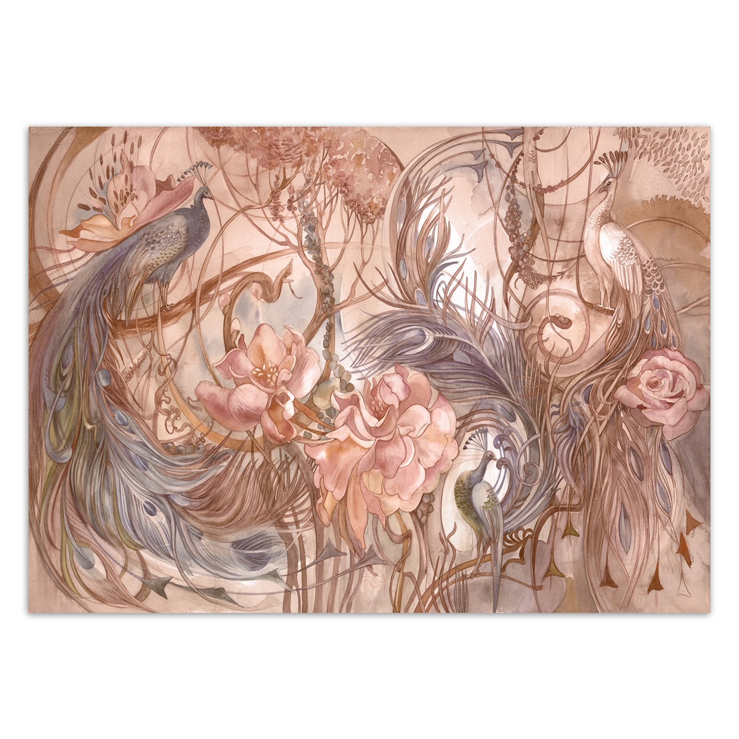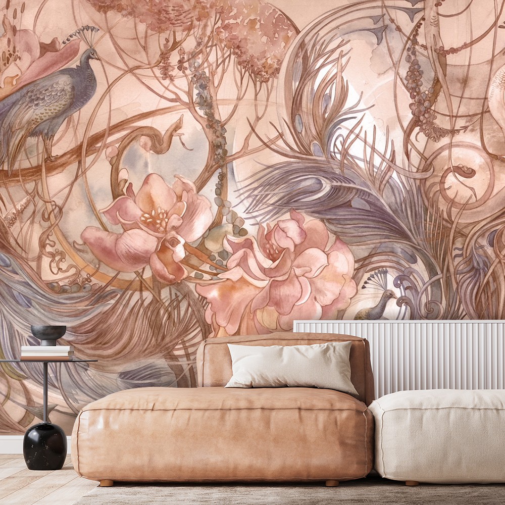 Fototapete Tropische Dschungel Pfau Palmen Blätter Rosa