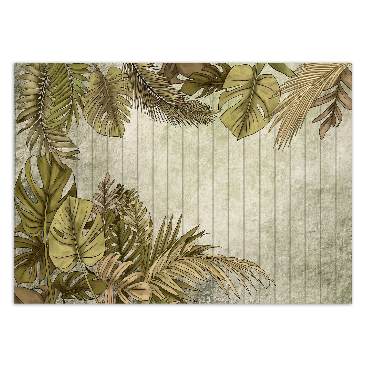 Fototapete Tropische Blätter auf einem Hintergrund aus Brettern