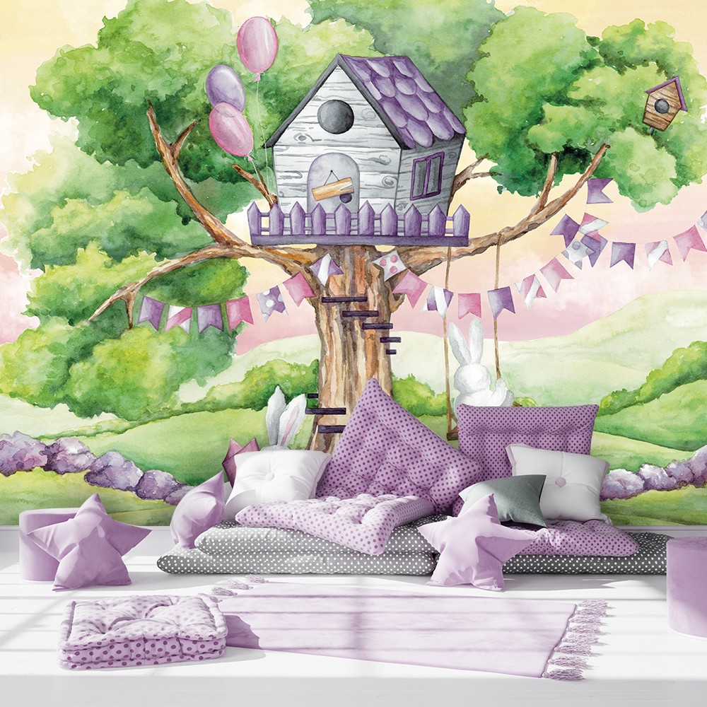 Fototapete Weiße Kaninchen Hütte auf dem Baum