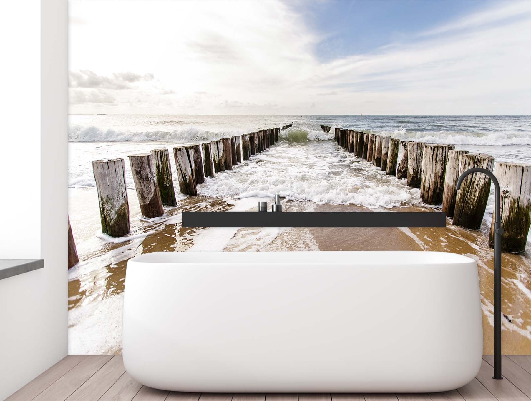 Fototapete Wellenbrecher Meer Strand Landschaft