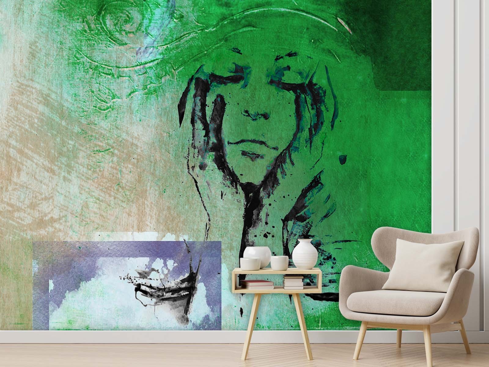 Fototapete Frau wie gemalt Aquarell