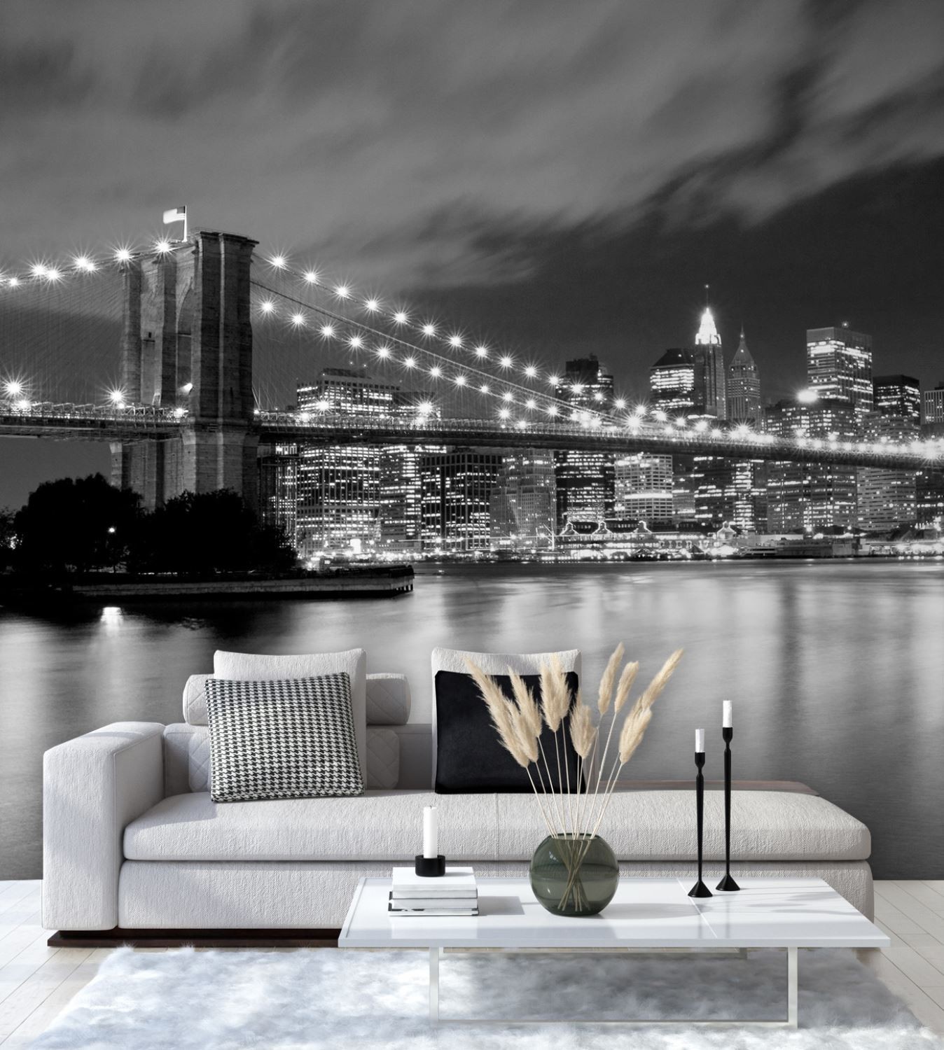 Fototapete New York Brooklyn Bridge bei Nacht beleuchtet
