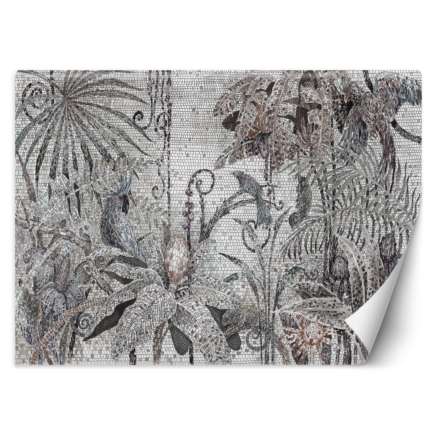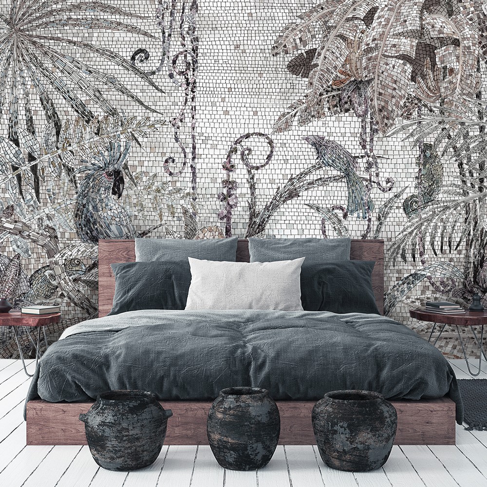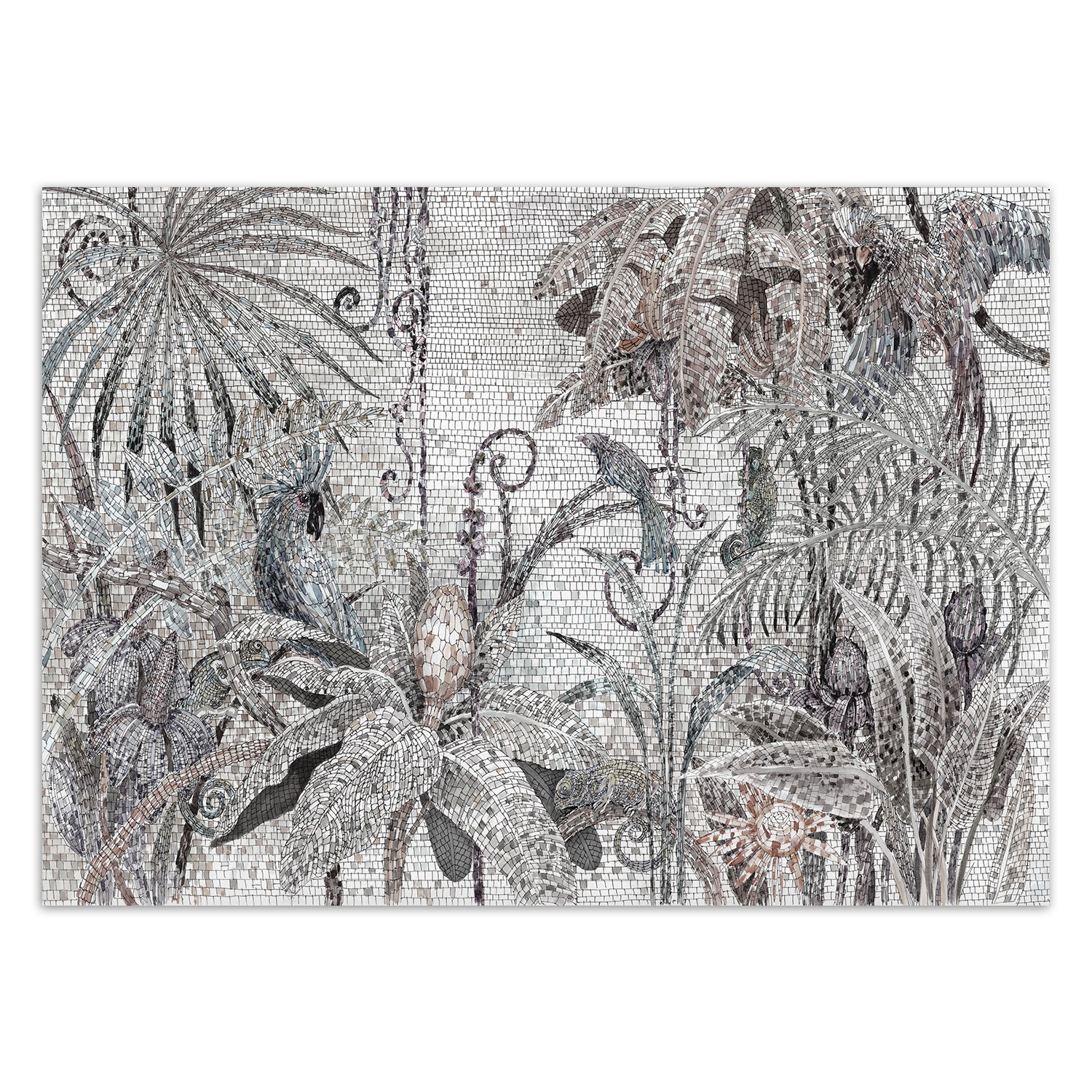 Fototapete Mosaik - Dschungel Grau