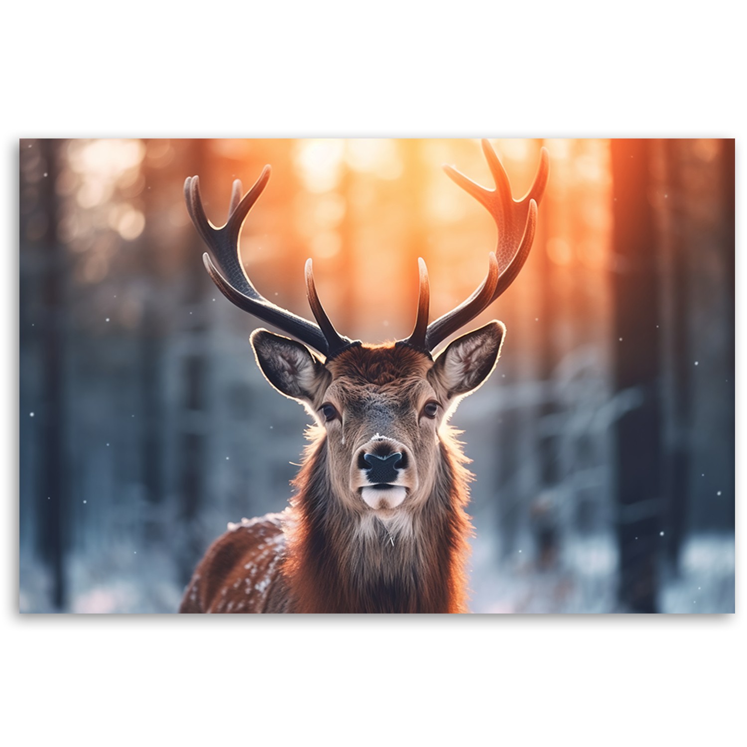 Leinwandbild, Hirsche auf dem Hintergrund des Sonnenuntergangs