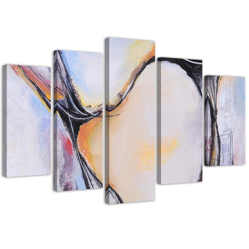 Leinwandbild 5 teilig, Abstraktion Pastell Beige