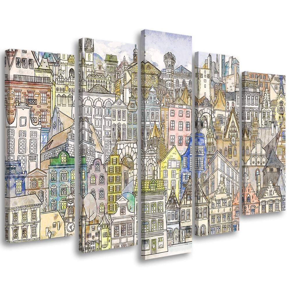 Leinwandbild 5 teilig, Fröhliche Stadt