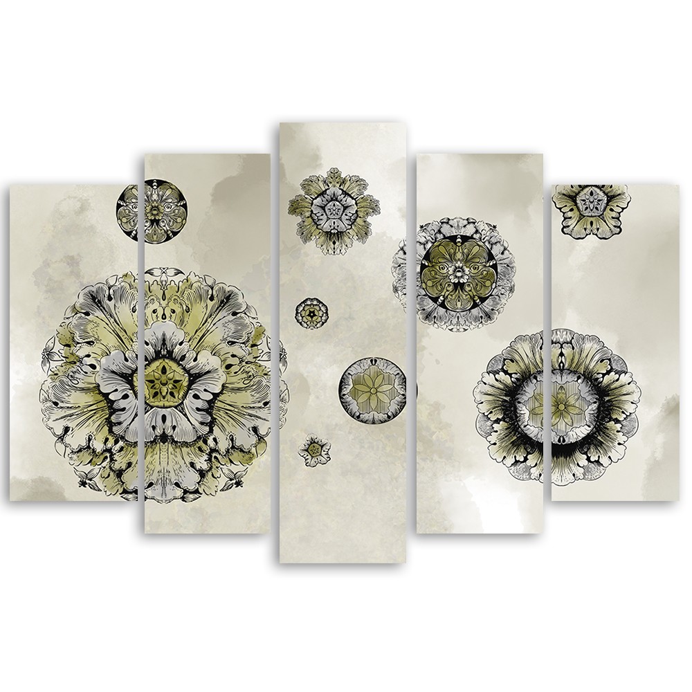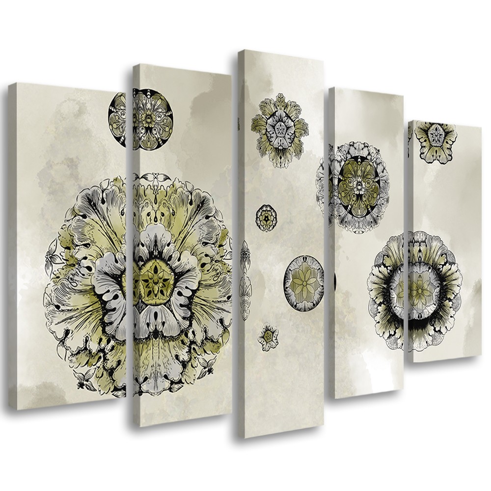 Leinwandbild 5 teilig, Florale geometrische Formen