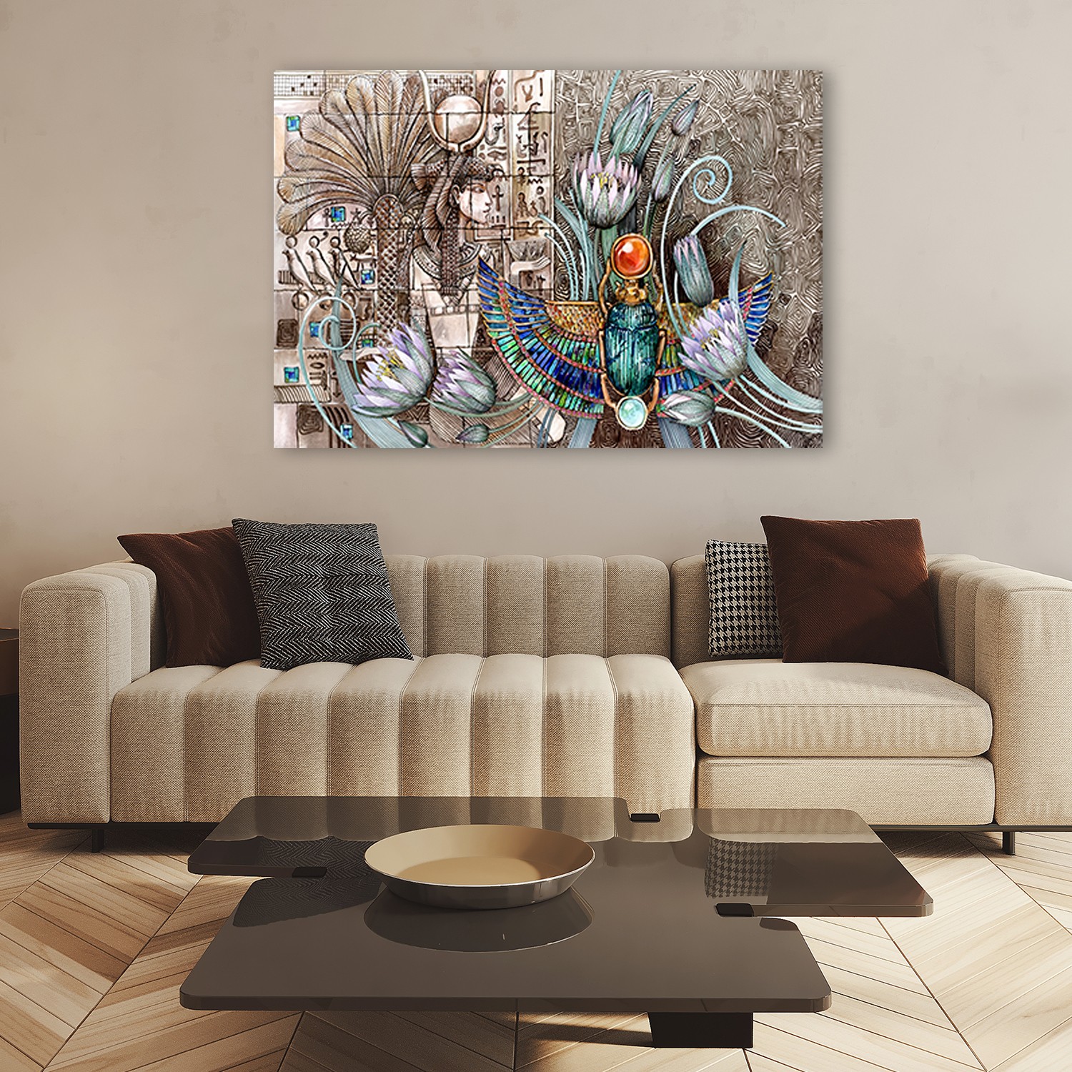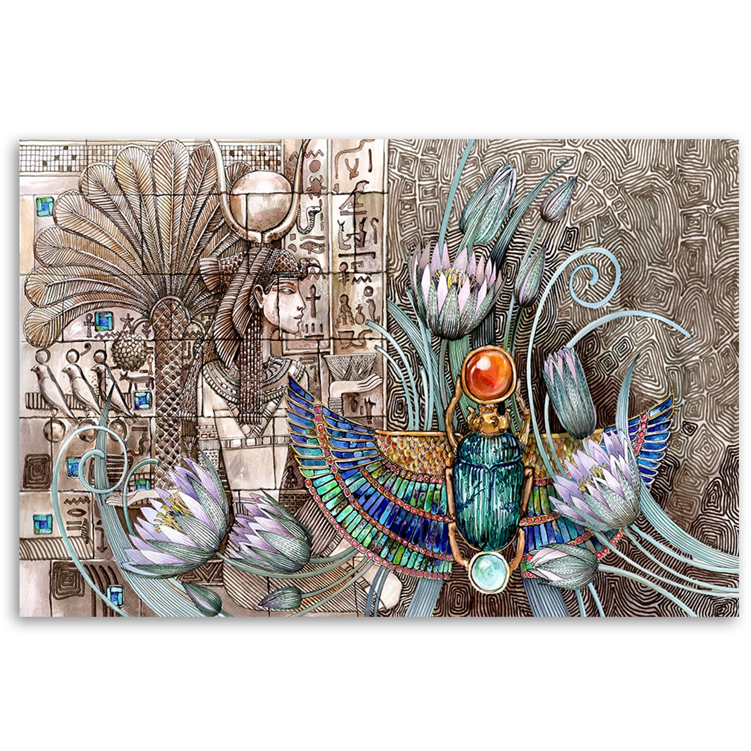 Bild auf Leinwand, Ägyptische Hieroglyphen und Skarablen
