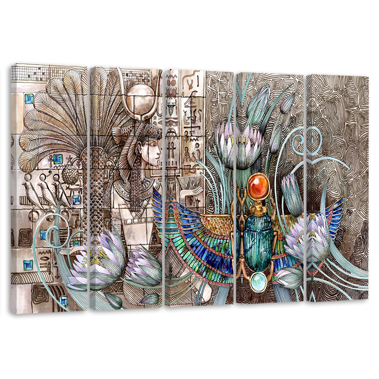 Leinwandbild 5 teilig, Ägyptische Hieroglyphen und Skarablen
