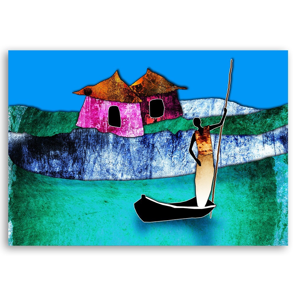 Leinwandbild, Afrikanische Frau in einem Boot