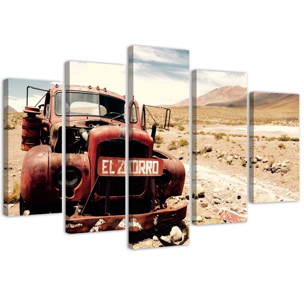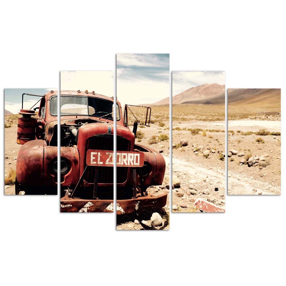 Leinwandbild 5 teilig, Alte Autowüste