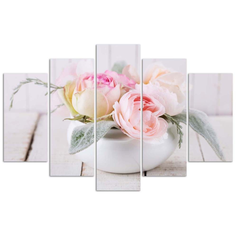 Leinwandbild 5 teilig, Rosen Vase Natur Blumen