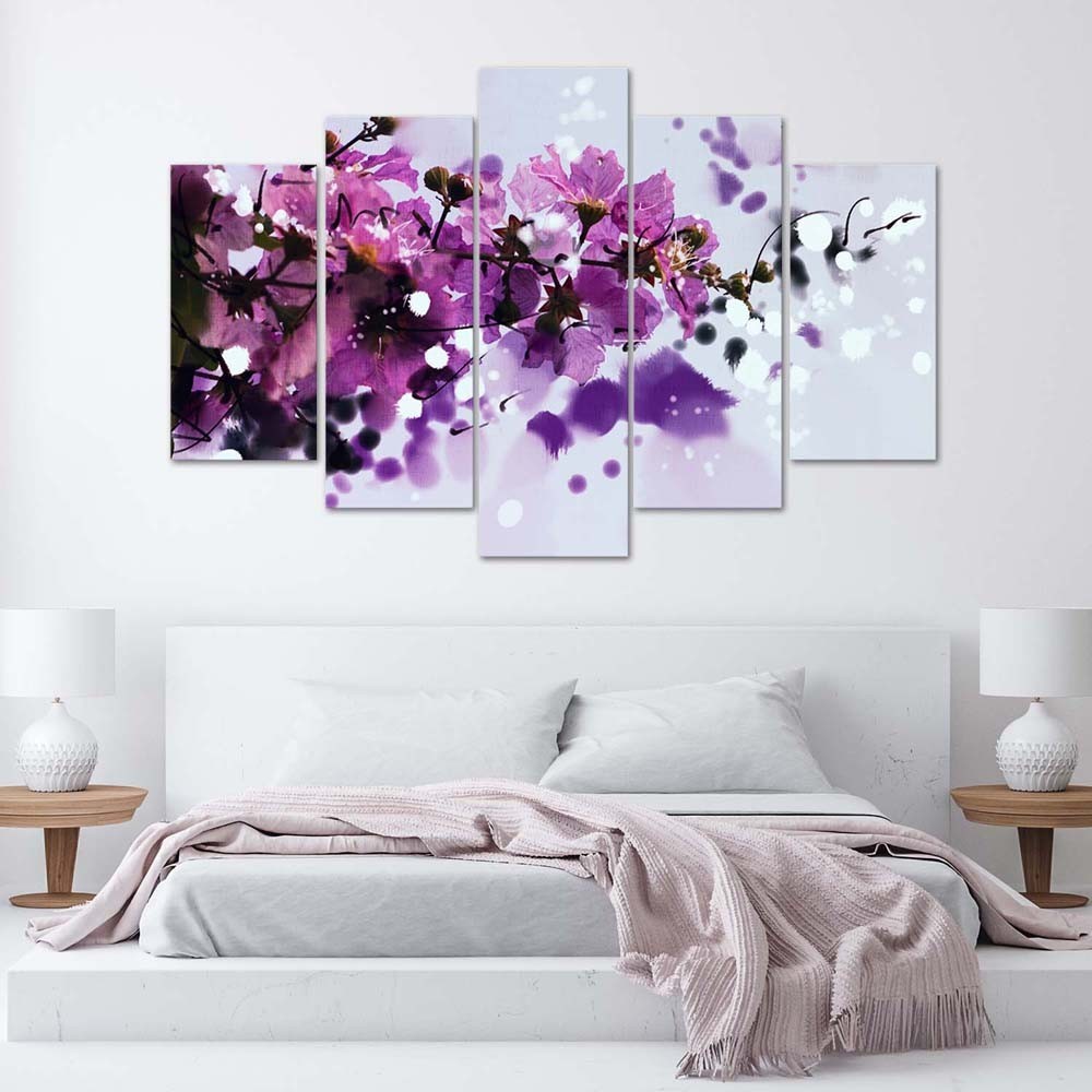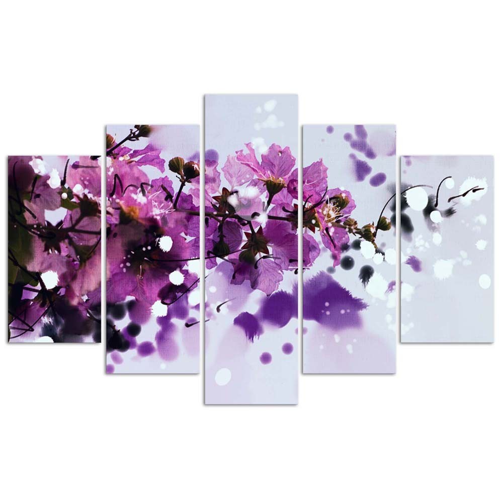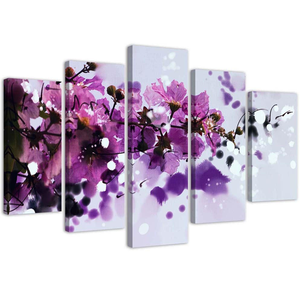 Leinwandbild 5 teilig, Blumen Lila Natur