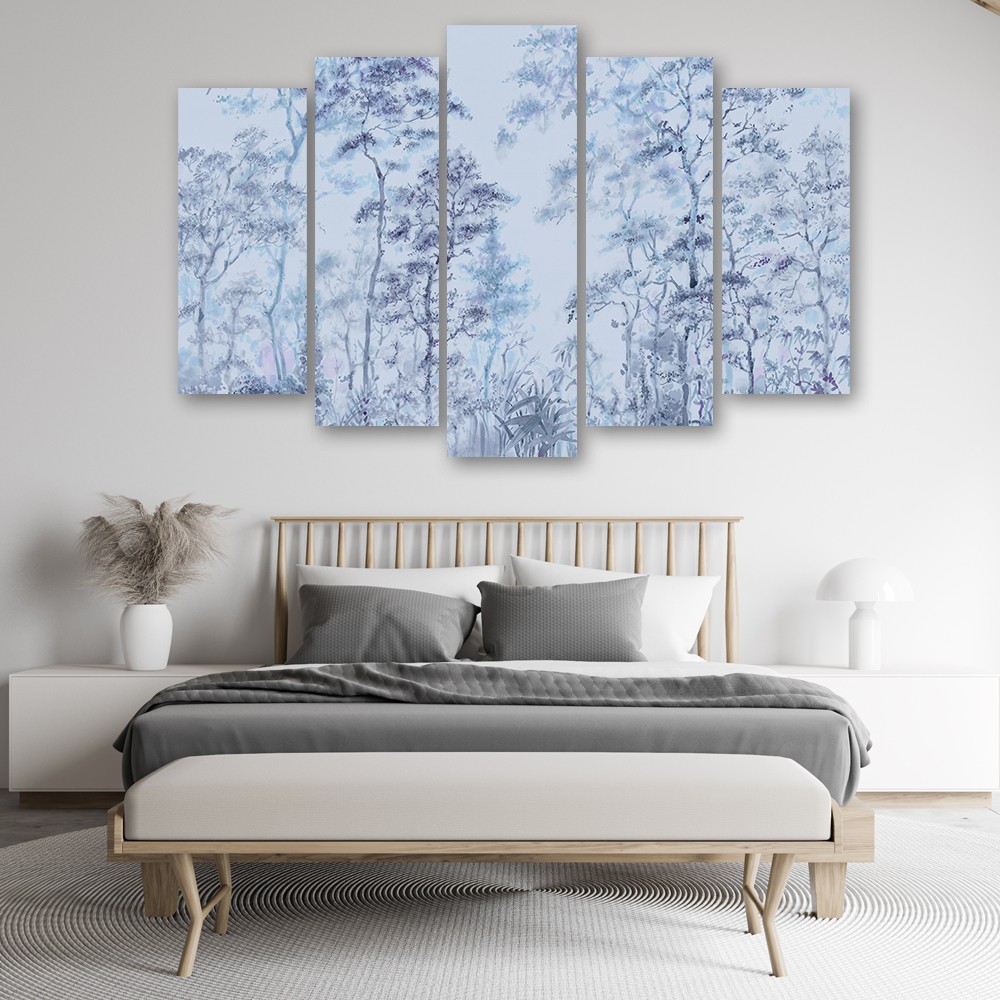 Leinwandbild 5 teilig, Hohe dünne Bäume