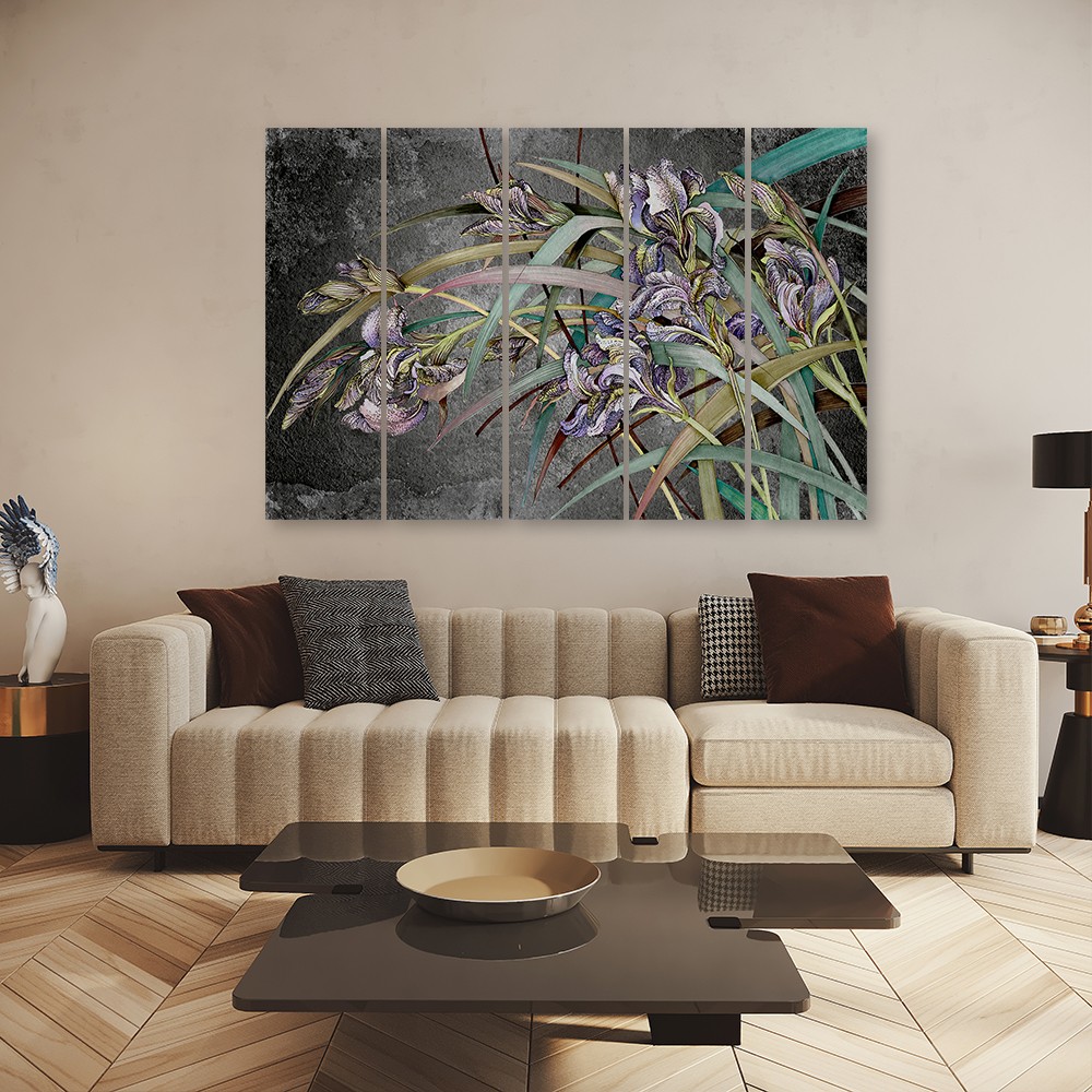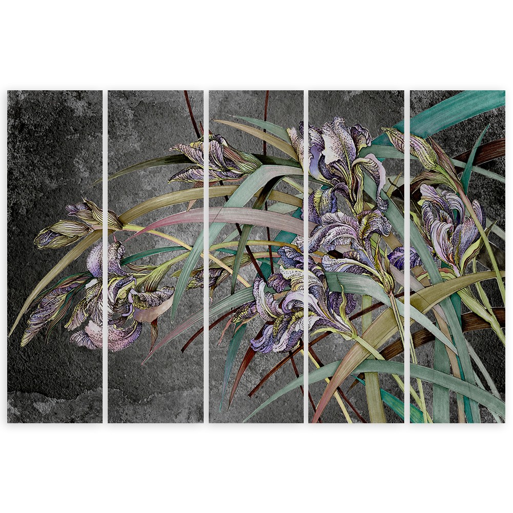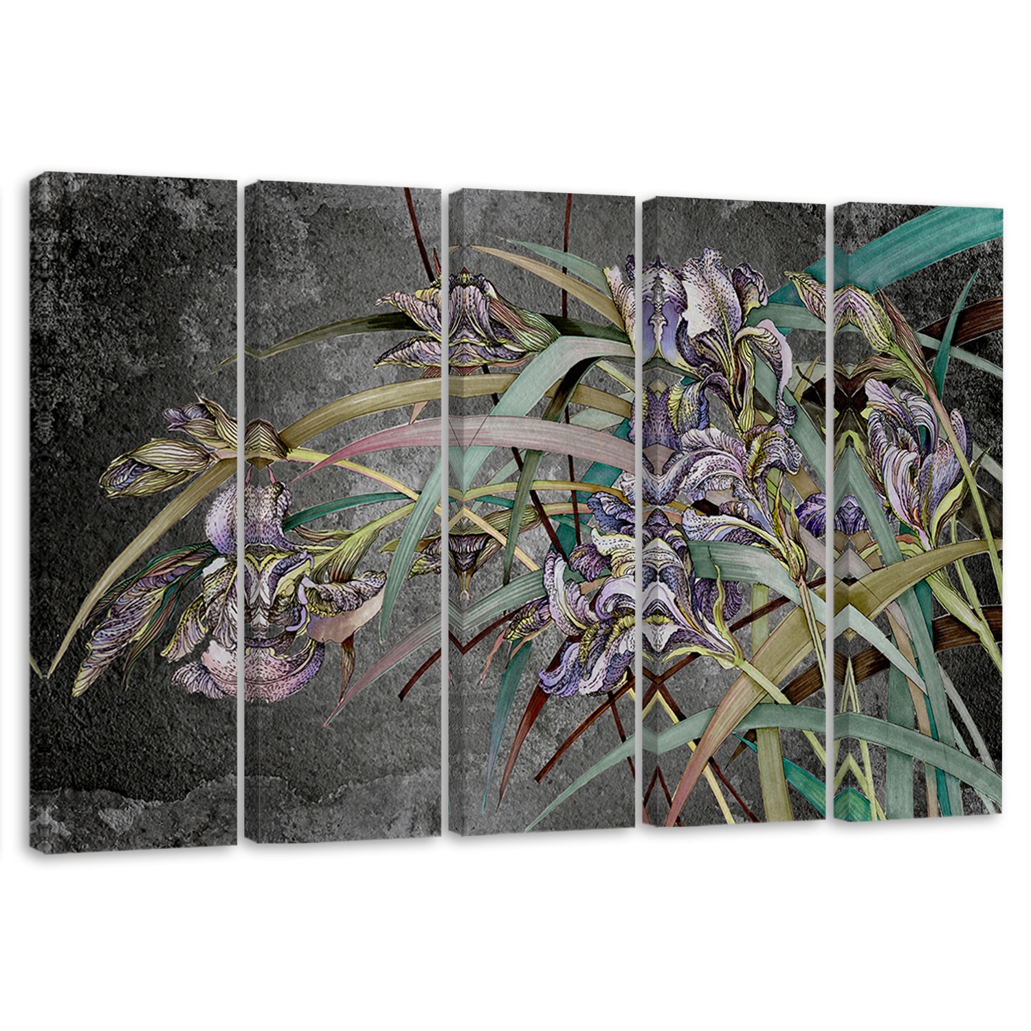 Leinwandbild 5 teilig, Iris Blumen im Wind