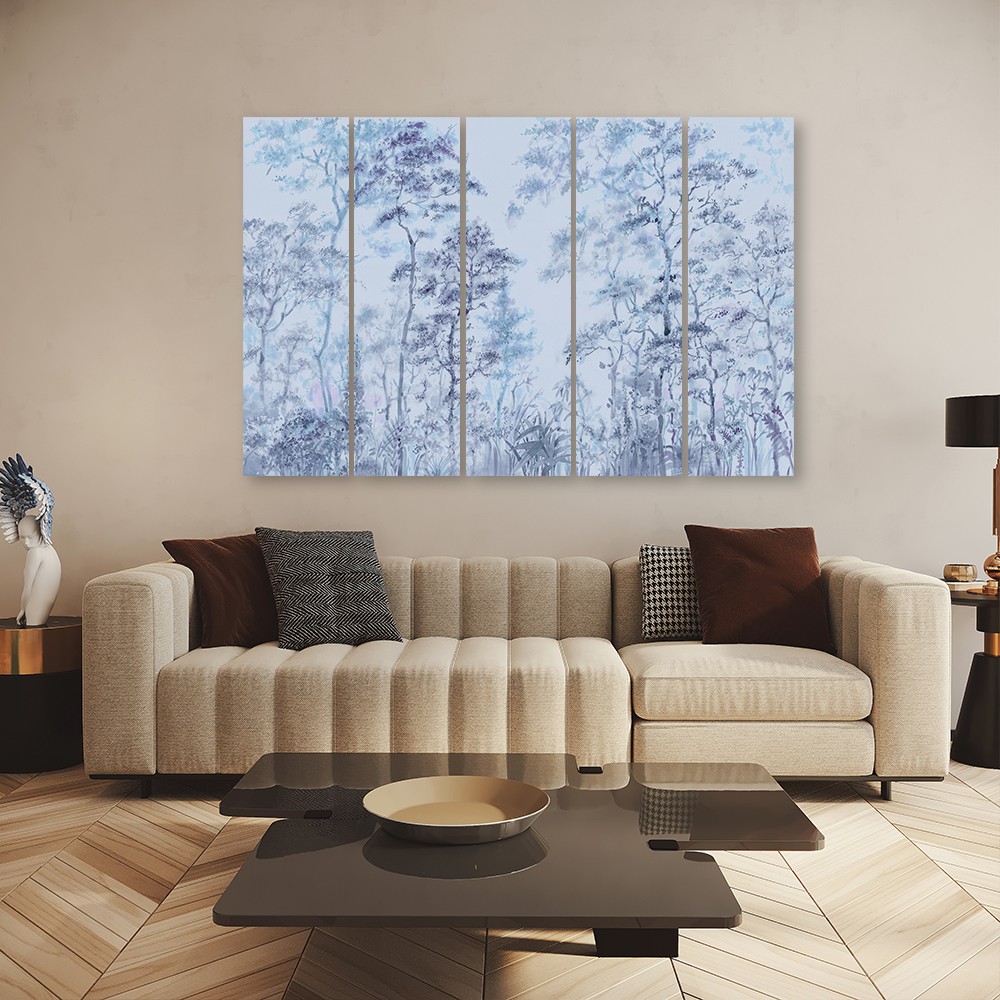 Leinwandbild 5 teilig, Hohe dünne Bäume