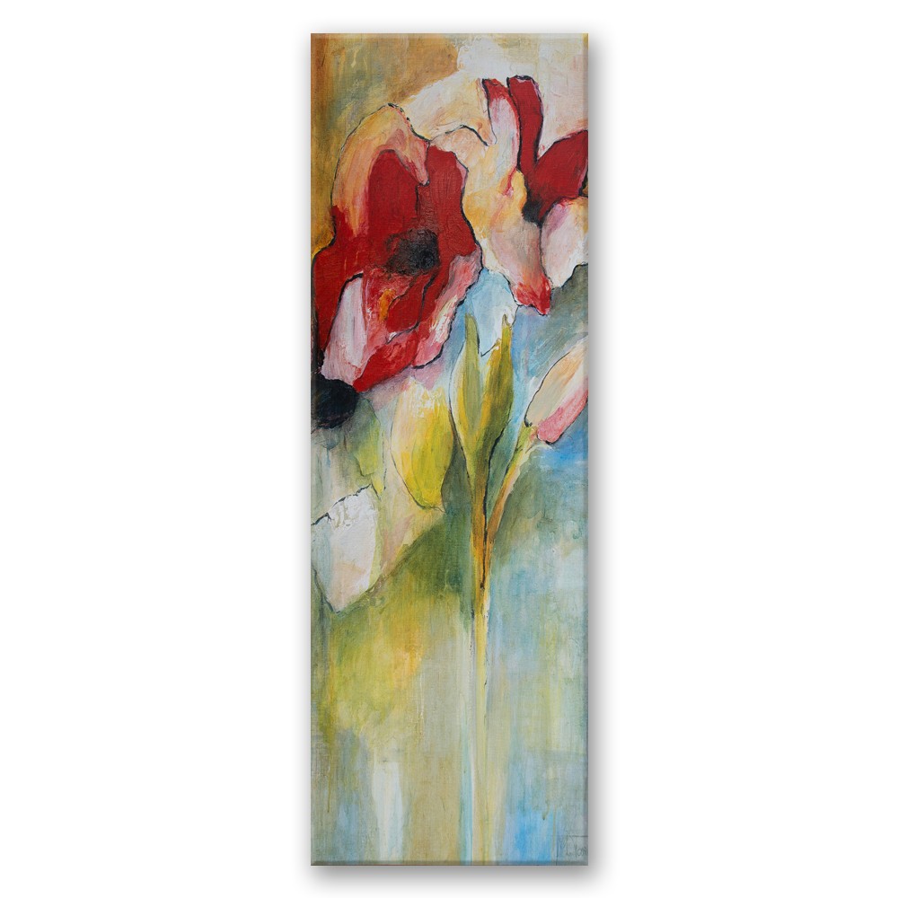 Leinwandbild, Gemalte Mohnblumen und Rosenknospen