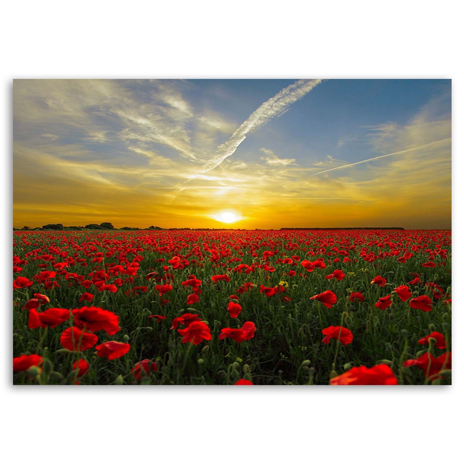 Leinwandbild, Wiese voller roter Mohnblumen in der Sonne