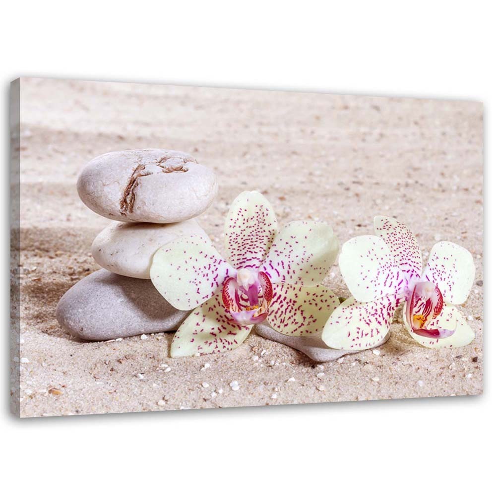 Bild auf Leinwand, Orchidee und Steine auf Sand
