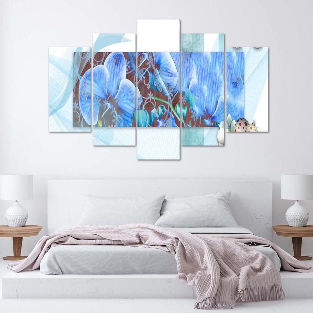 Leinwandbild 5 teilig, Orchidee Blau