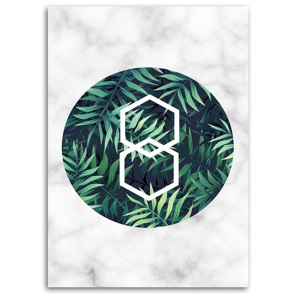 Leinwandbild, Farnblatt in einem Kreis - Marmor
