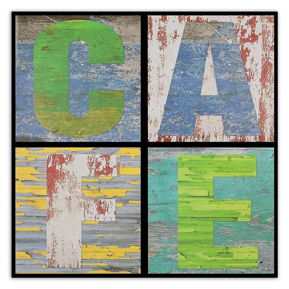 Bild auf Leinwand, Collage mit dem Wort Cafe