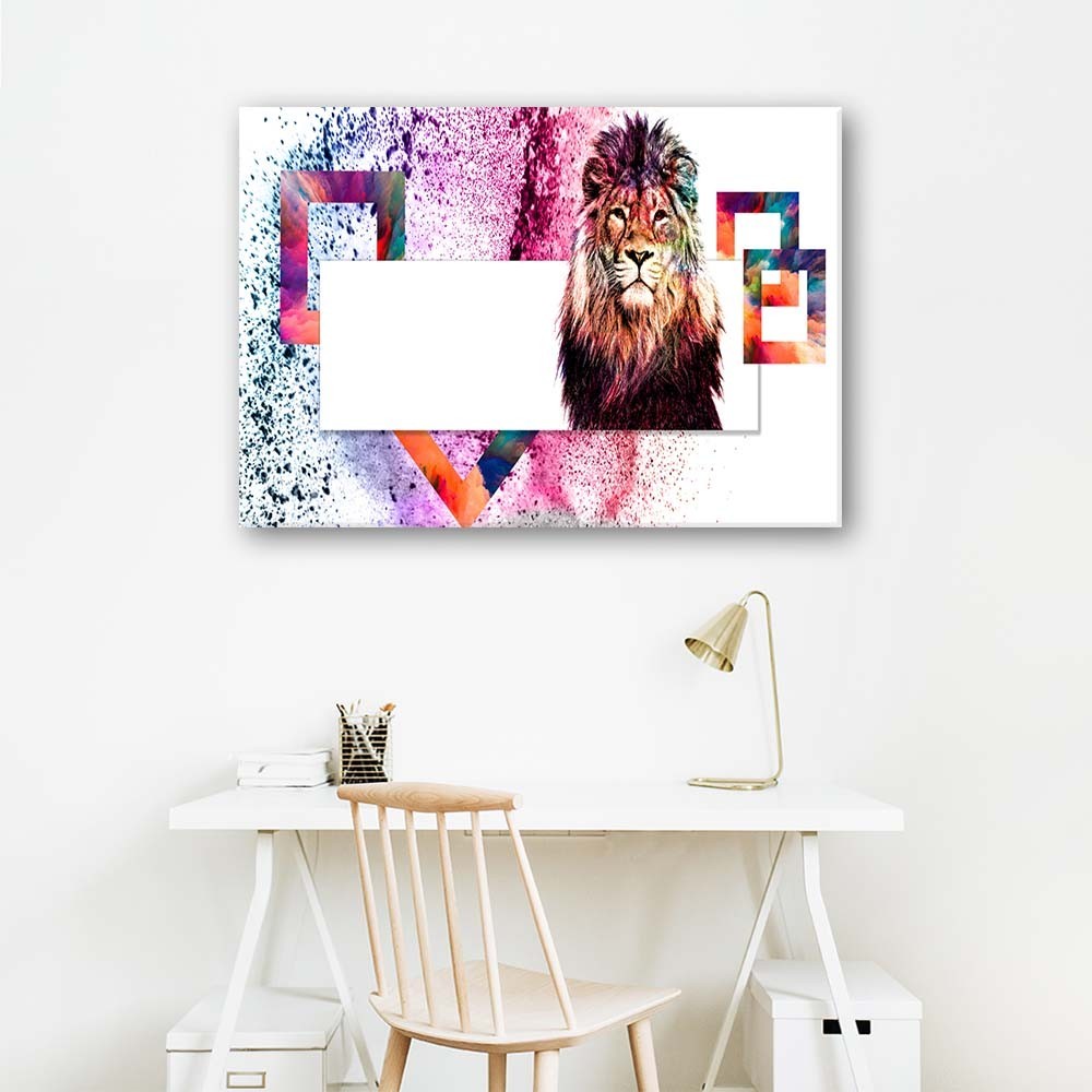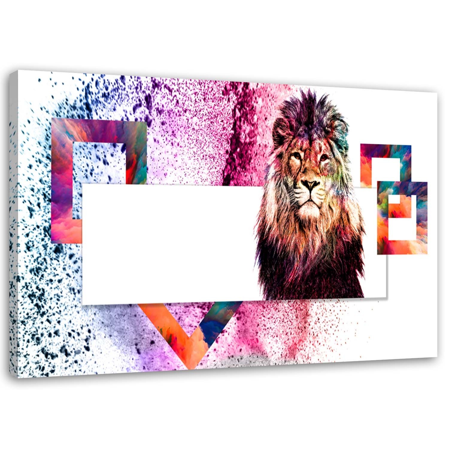Leinwandbild, Mehrfarbiger Löwe auf weißem Hintergrund