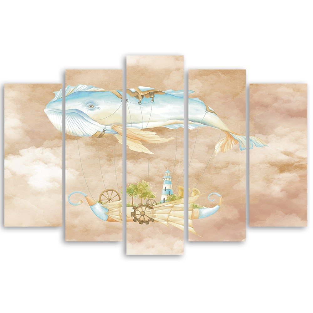 Leinwandbild 5 teilig, Fliegerwal und Schiff