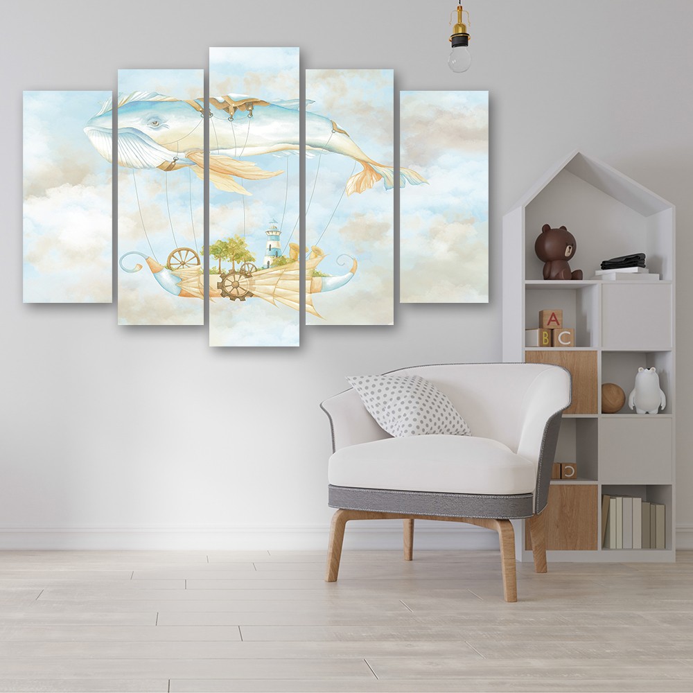 Leinwandbild 5 teilig, Fliegerwal und Schiff