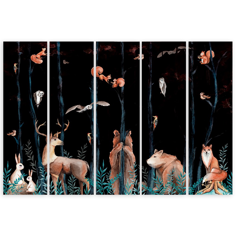 Leinwandbild 5 teilig, Waldtiere Hirschbär Fuchs