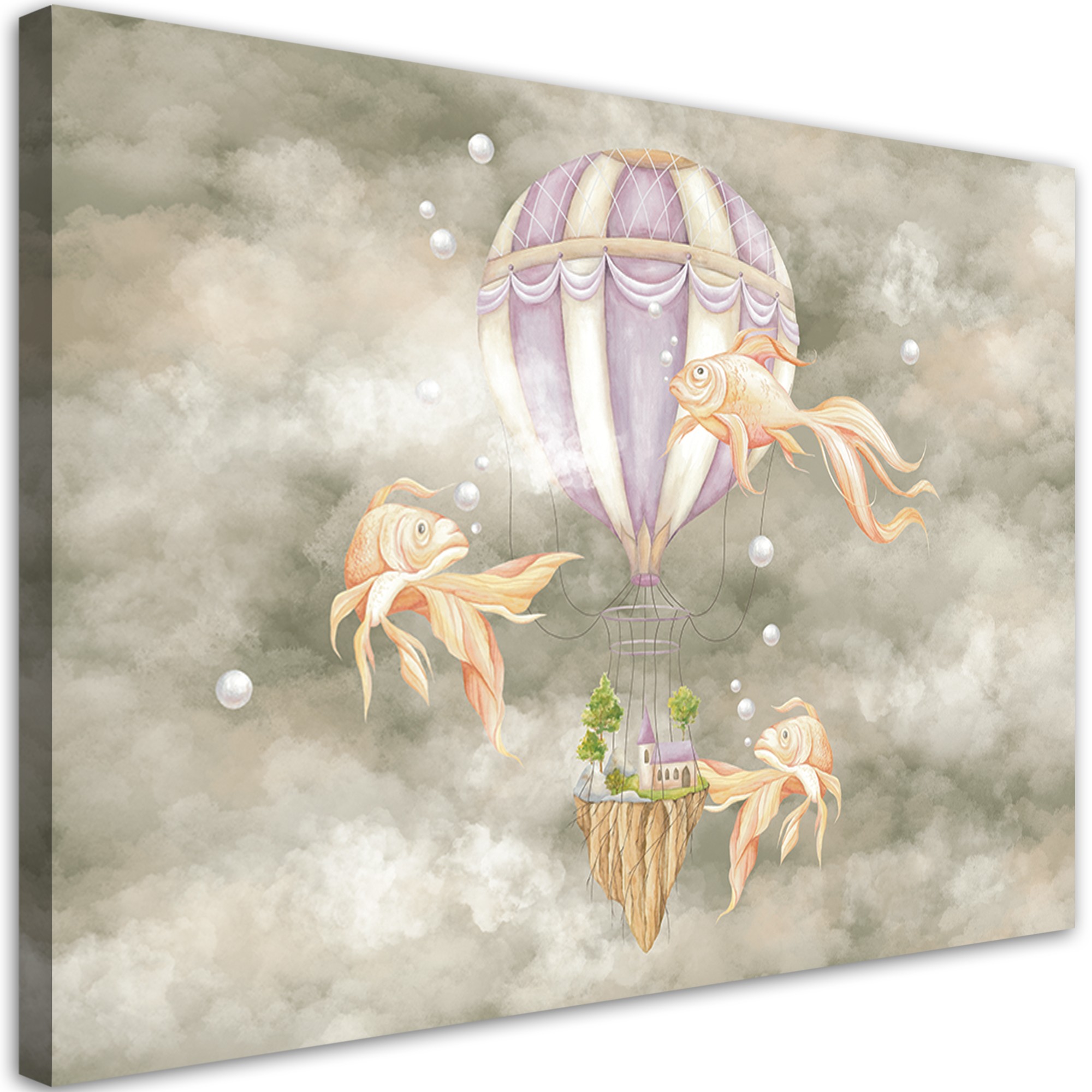 Wandbild, Heißluftballon fliegendes Haus und Fisch