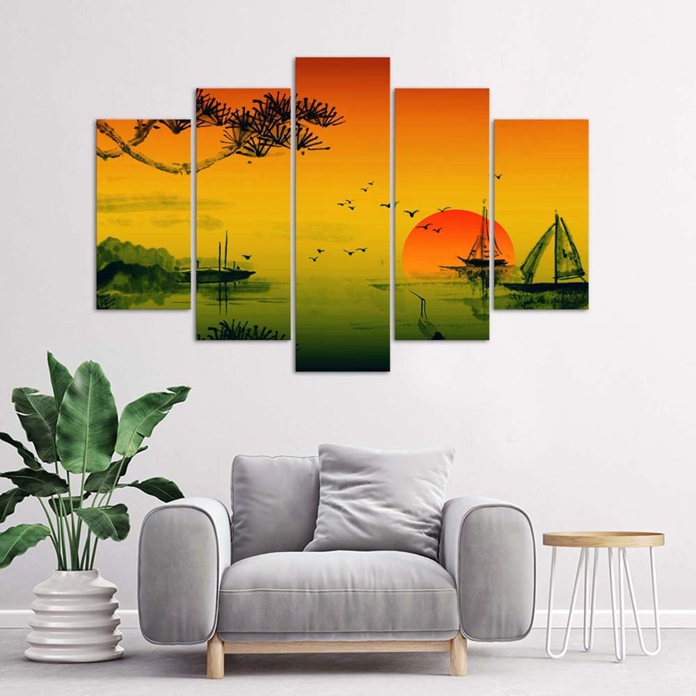Leinwandbild 5 teilig, Japan Sonnenuntergang
