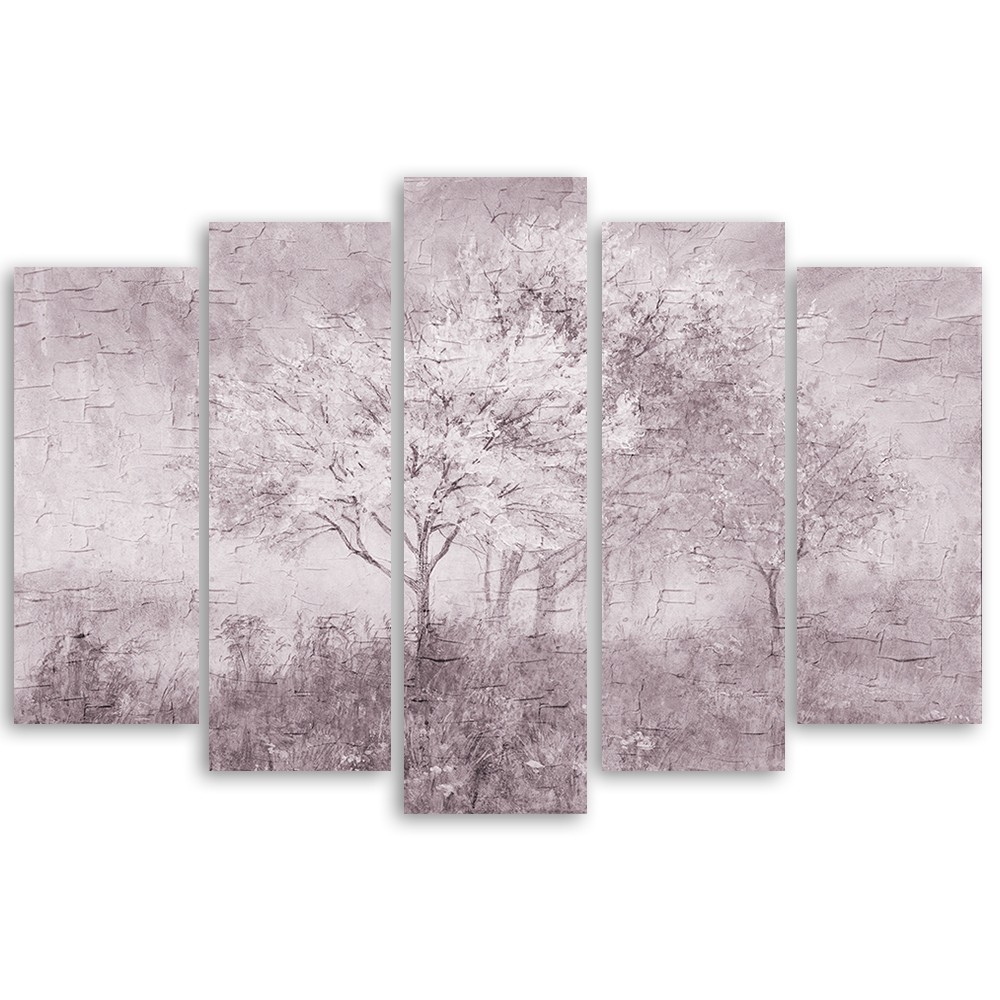 Leinwandbild 5 teilig, Ein blühender Baum in der Wiese Old Schwarz und Weiß