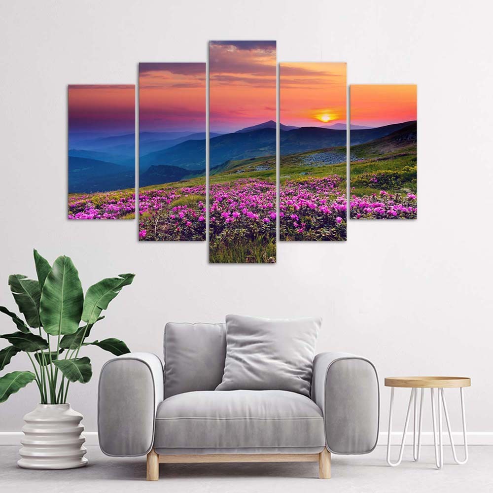 Leinwandbild 5 teilig, Sonnenaufgang Landschaftsbild