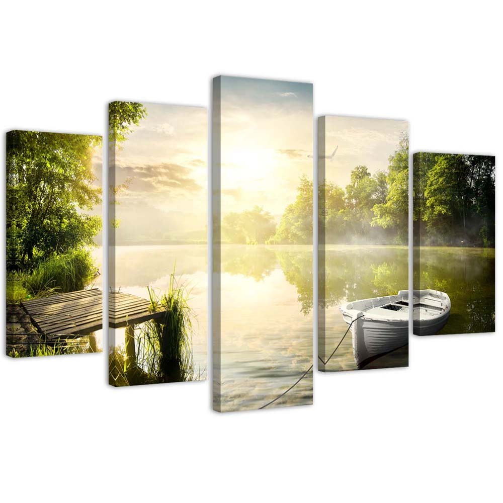 Leinwandbild 5 teilig, Sonnenaufgang See