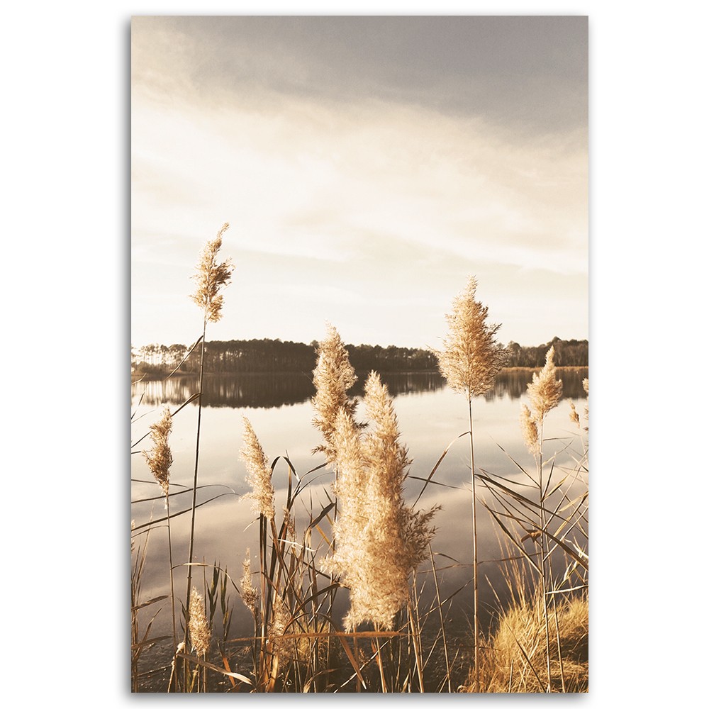 Leinwandbild, Pampasgras am See