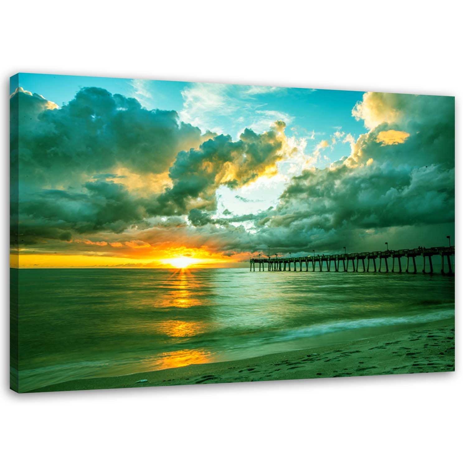 Leinwandbild, Pier und Sonnenuntergang