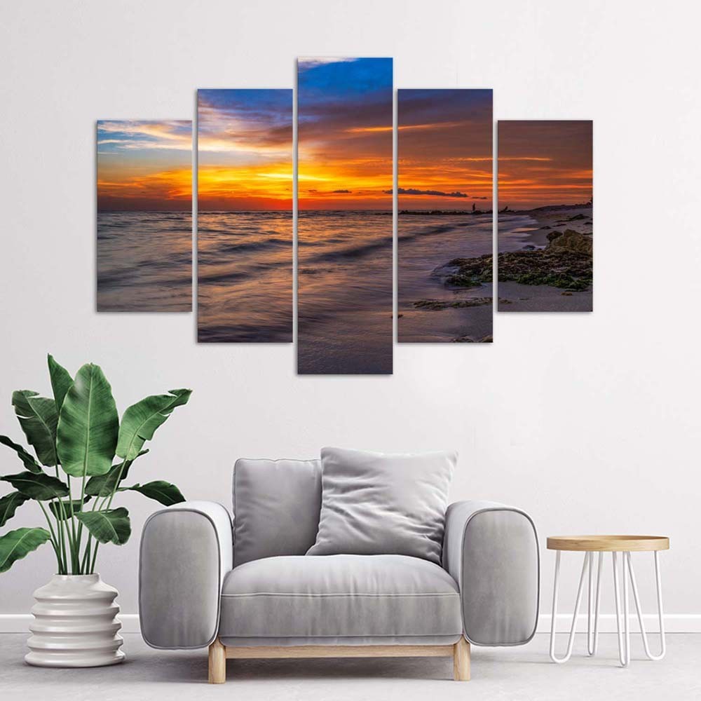 Leinwandbild 5 teilig, Meer bei Sonnenuntergang
