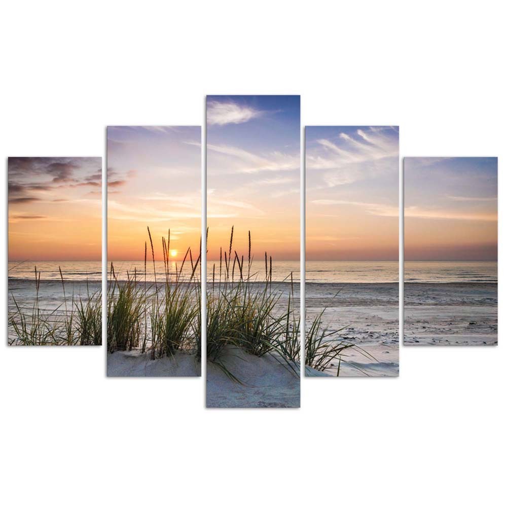 Leinwandbild 5 teilig, Meer Strand Sonnenuntergang