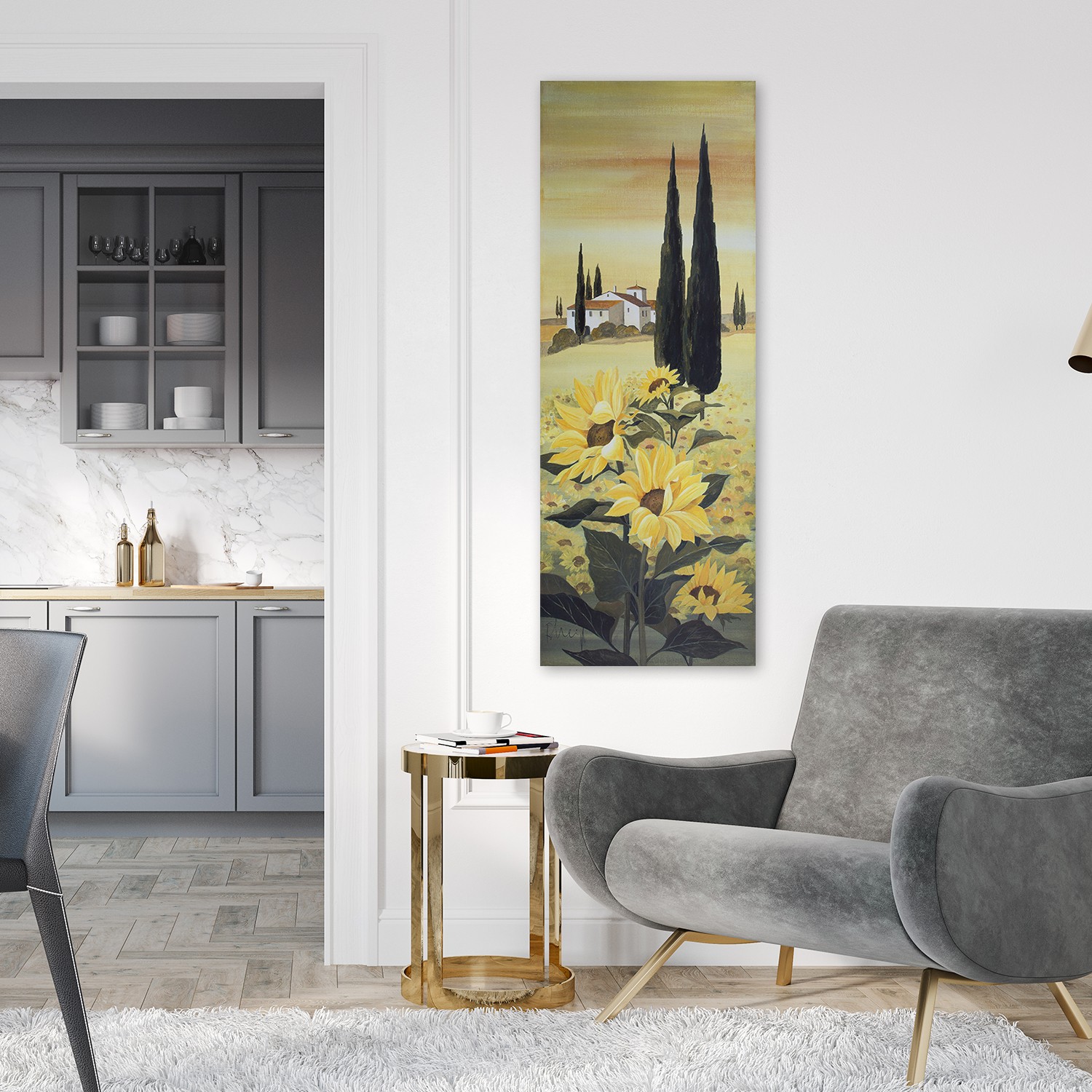 Leinwandbild, Sonnenblumen auf einem Haushintergrund