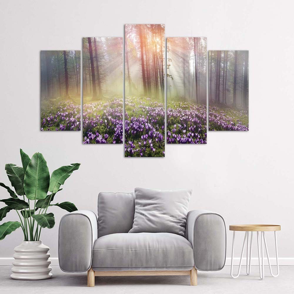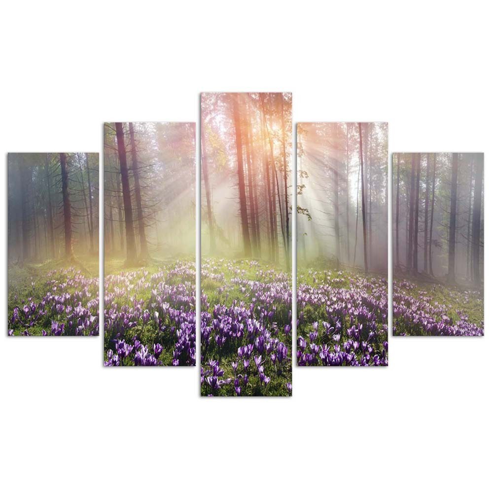 Leinwandbild 5 teilig, Neblige Waldblumen