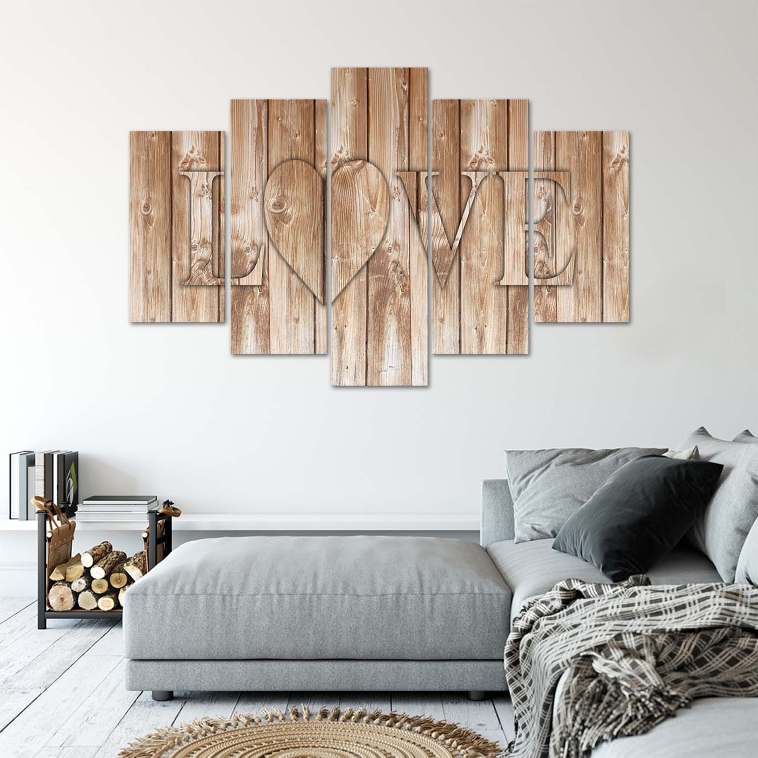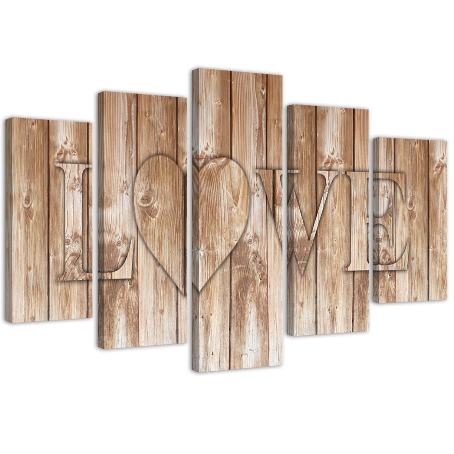 Leinwandbild 5 teilig, Liebe Inschrift Bretter Braun