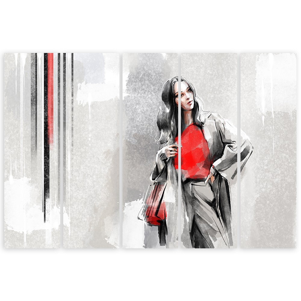Leinwandbild 5 teilig, Eine Frau in einem Mantel