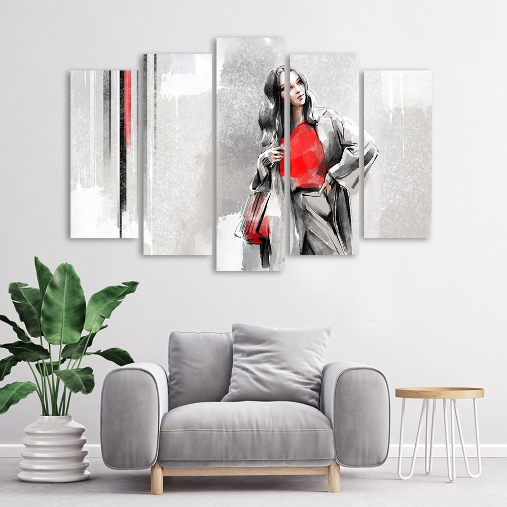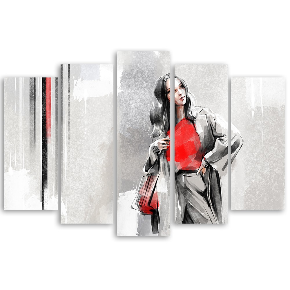 Leinwandbild 5 teilig, Eine Frau in einem Mantel