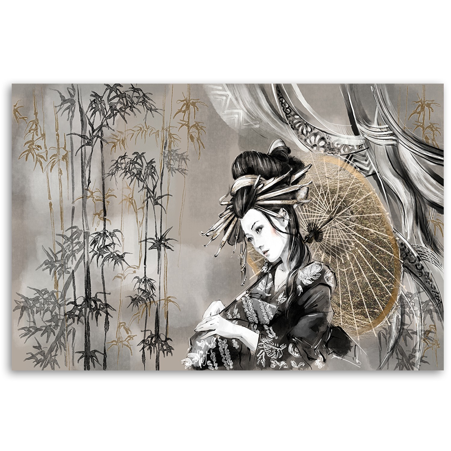 Leinwandbild, Geisha und Bambus