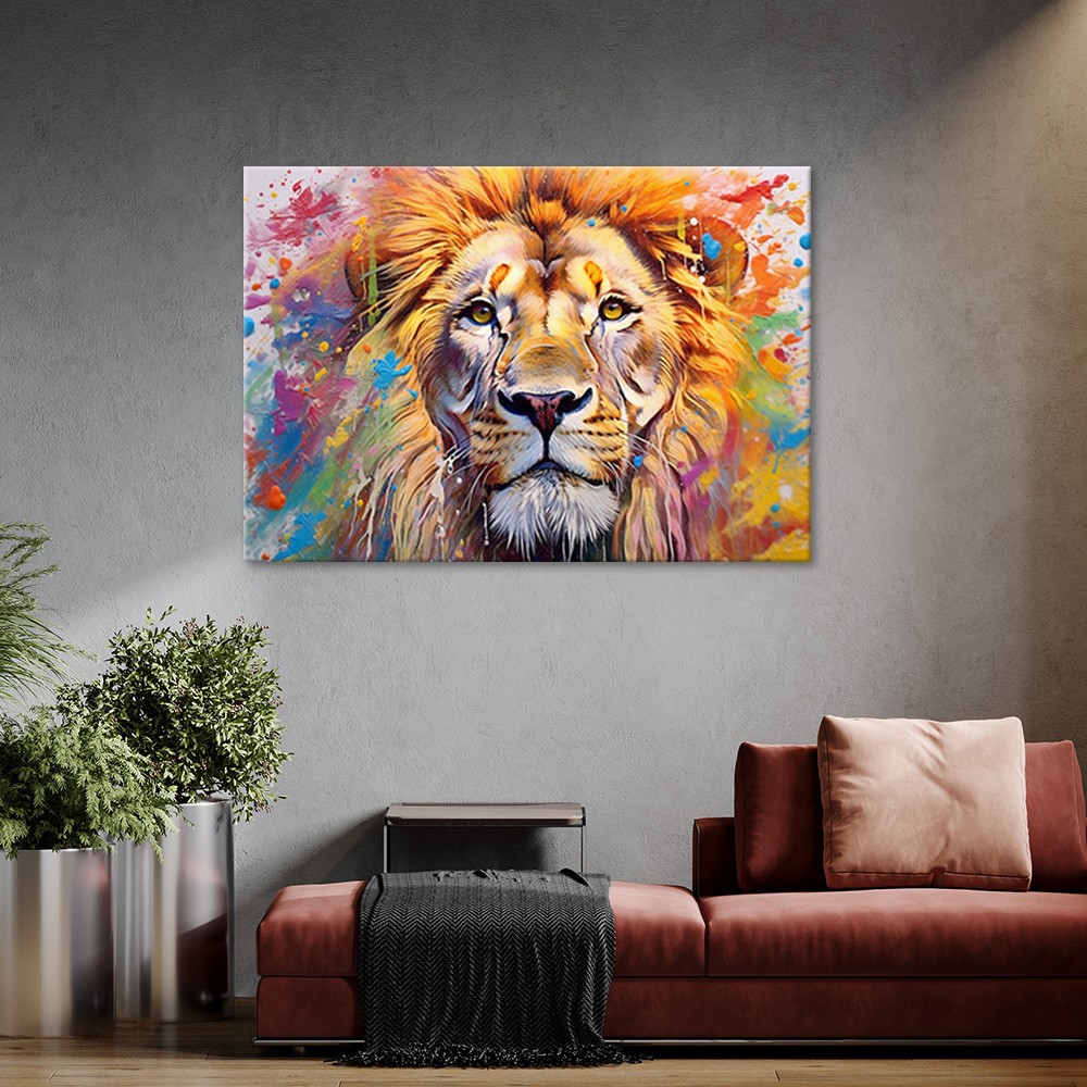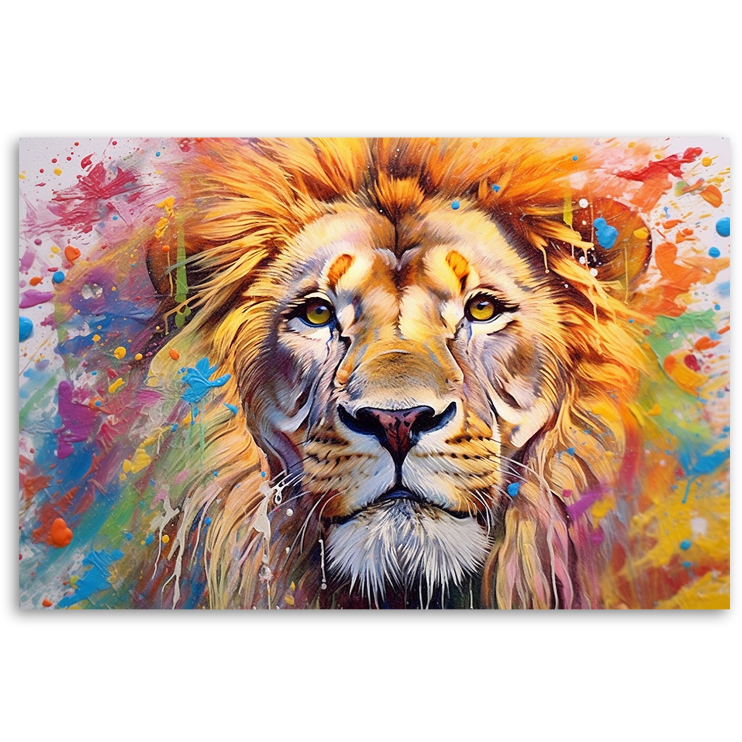 Leinwandbild, Löwe Abstraktion Aquarell AI