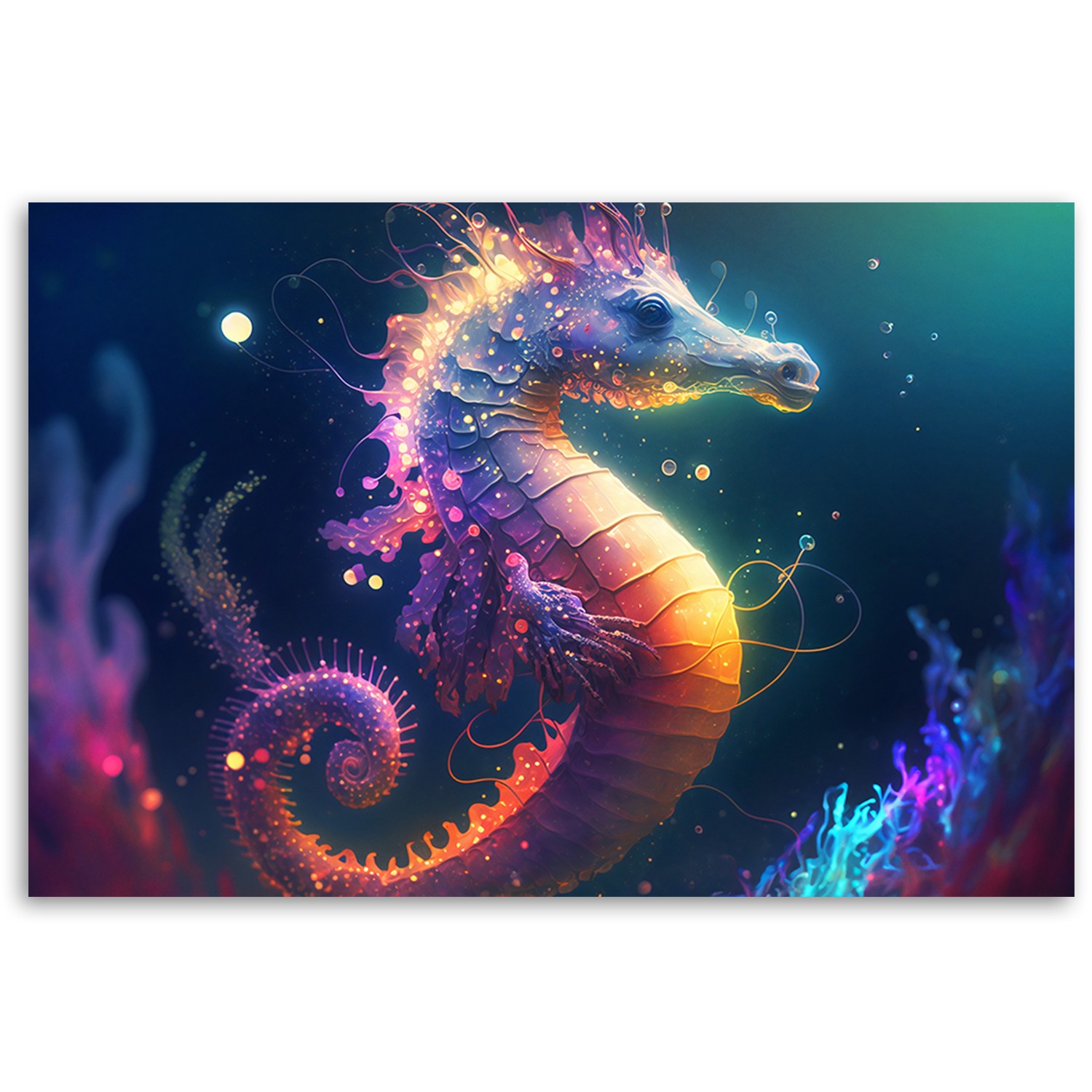 Leinwandbild, Neon-Seepferdchen
